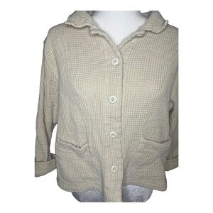 Effortless and breezy, this cream waffle-knit cardigan from Crossing Pointe is the perfect layering piece for a relaxed, laggenlook vibe. Made from a lightweight linen-cotton blend, it drapes beautifully and offers that cozy, oversized fit ideal for layering over your favorite outfits. Perfect for casual days or adding texture to your minimalist wardrobe.