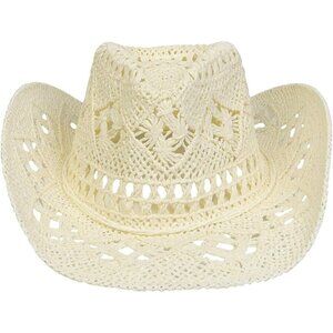Cream Western Style Beige Cowboy Straw Hat & Rolled Brim One Size Fits Most Plai