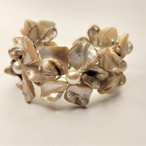 Off-White or Cream Colored Pearl Adjustable Cuff Bracelet Bangle