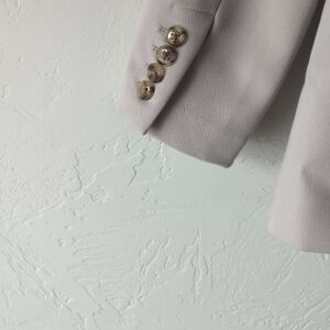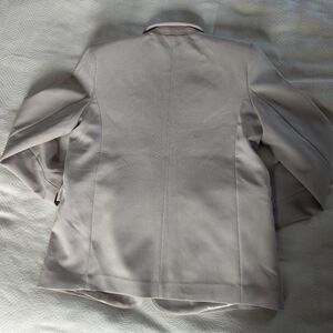 Chic and stylish soft greige, grey, bone, cream blazer. Ideal for professional and casual settings. Features a sleek design with a single button closure. 26" long, 17" shoulder to shoulder.