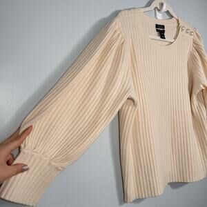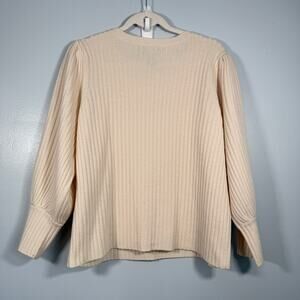 Cream Wool Cashmere Puff Sleeve Sweater Pearl Shoulder Coquette Winter Knit L