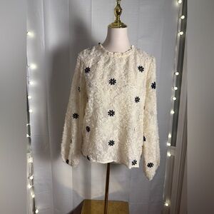 Cream and Black Embellished Sheer Boxy Blouse