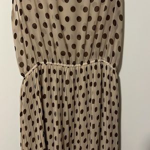 Cream and Brown Dot Dress by Forever 21. Size Large. Sheer top with Pleated Bottom. Sleeveless and Calf Length