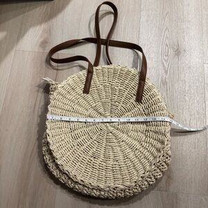 This tote bag showcases a beautiful cream and brown color palette, crafted from woven materials that exude a rustic charm. Its structured design and intricate weaving pattern make it a perfect accessory for casual outings. The sturdy handles add both functionality and style, ensuring it complements any bohemian-inspired look.