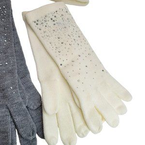 Cream and Gray Hat and Gloves Set Silver Metallic Embellished Dh836