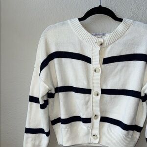 Cream and Navy Striped Cardigan