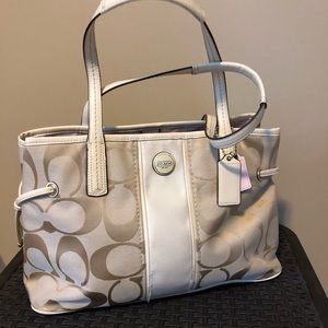 This is a mint condition Coach bag. The pink is a beautiful color. No marks inside or out. Nice size as well.