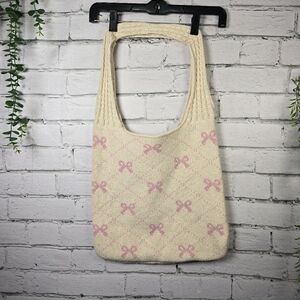 Cream and Pink Shoulder Bag with Delicate Bow Pattern