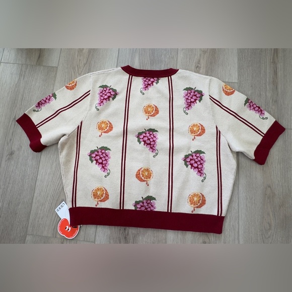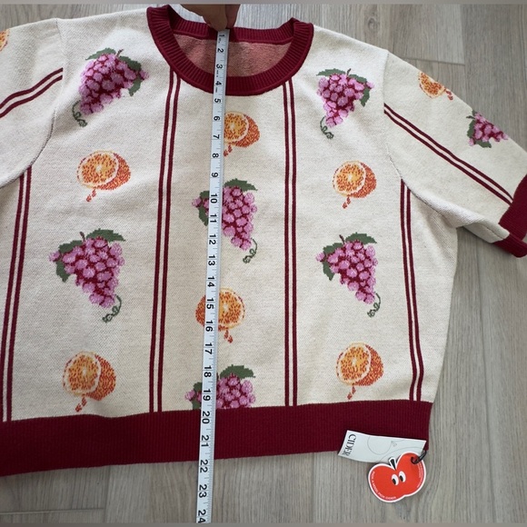 Cream and Red Patterned Sweater. 🍎🍇🍊