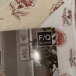 Cream and Red Vintage-Inspired Floral Quilt