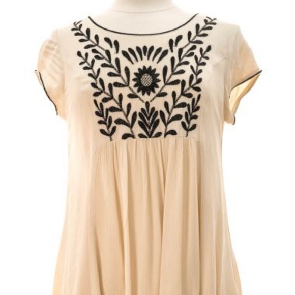 Dress perfect for summer that just needs to be ironed! Cream with sticked black embroidery. From Francesca's!