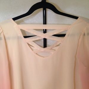 Button closure on sleeves. Cross cross back detail. Amazing on. Worn once
