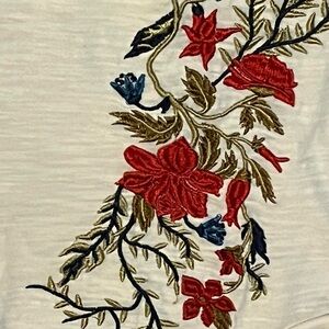 Cream and red floral embroidered short sleeve shirt #preppy #holiday #fl…