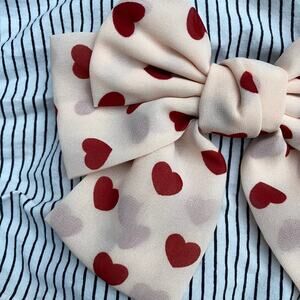 Cream and red heart bow, hair clip barrette coquette cottage romantic Y2K indie. Measures 8" across at widest point. Excellent condition pre owned. Originally purchased from Dolls Kill.