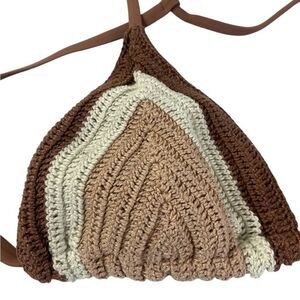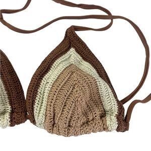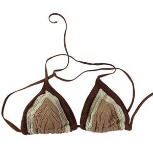 Cream and Brown Minimalist Triangle Bra