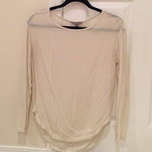 Super soft rayon blouse. Very cute when the sleeves are rolled. Great with jeans and boots!