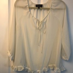 Pretty sheer blouse with a ruffle bottom. Looks great with leggings. Only worn once.