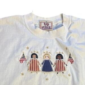 Cream , blue and red 90s vintage USA t-shirt with cute graphic