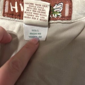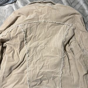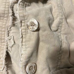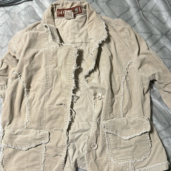 Cream button jacket. Corduroy feel, very soft. Only worn a handful of times. Size large, but fits like a medium. Hint jeans brand.