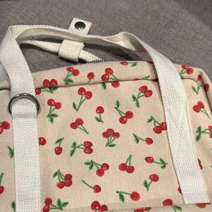13x15 inches cherry back pack by wild fable. Canvas used once. Slight discolor and small stain inside but out side in great shape. Used 3 times. Bought at target.
