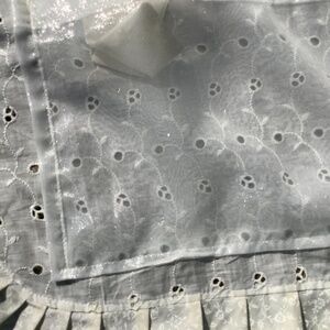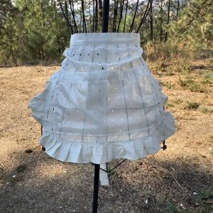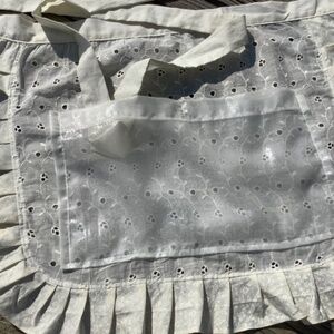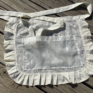Cute eyelet fabric apron. The fabric is cream or beige color.