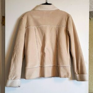 Very cute Cream colored jacket with embroidered flowers down the front. It buttons closed. Very soft. It does have a small stain on the back. Smoke and Pet free home.