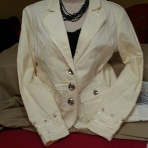 Brand new cream blazer with glass colored buttons on the front and on the sleeve cuffs