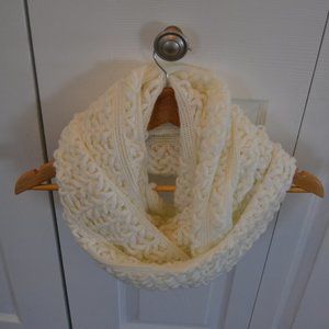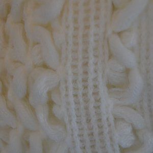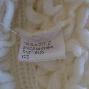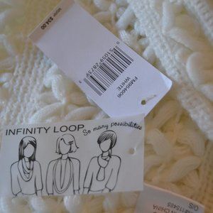 A soft, cozy fall and winter scarf with some tags still attached. Two styles of knitting are contrasted in this piece that can be worn multiple ways.