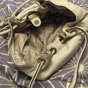 Cream colored Michael Kors hobo. Outside is in excellent condition there is a pen Mark on the inside that could be easily removed