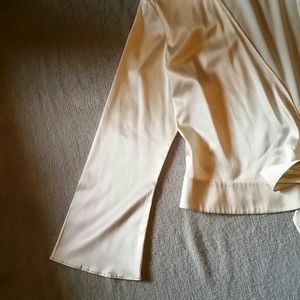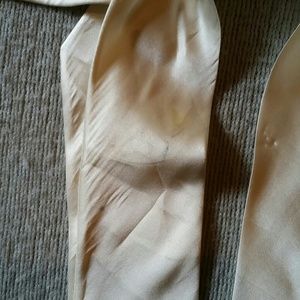Silky top with tie at the bottom. Has a little pen mark on the tie part. Shown in picture