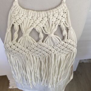 Cream crochet hanging fringe front tie adjustable back 100 cotton brand new