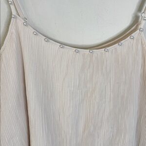 Cream dressy tank top pleated tiered pearl embellishment adjustable straps 2XL
