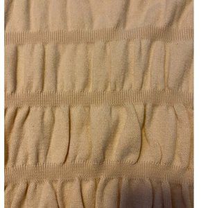 Cream ecru ruched knit long sleeve sweater made in Italy new with tags. Ribbed sections creating vertical ruches, soft and stretch viscose and nylon blend, straight fit, ribbed edging. Marked size One size but fits up to an M (or even a small L) in my opinion. All measurements are approximate and taken with the garment laying flat: Armpit to armpit 17’’ (stretches up to 20’’-22’’) Total length is 19’’. This item comes from a smoke free, pets friendly home. Recycled bags/box used when possible. Please, let me kjersey, now if you'd like any additional pictures and/or measurements or other info. Thanks for looking!