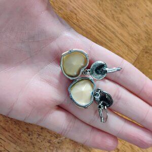 A unique pair of silver toned Cream heart dangle earrings. **Bag E1**
