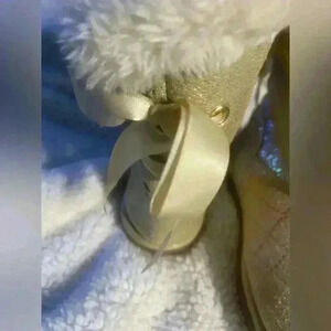 Cream iridescent, ribbon back tie, fleece lined boots size 2