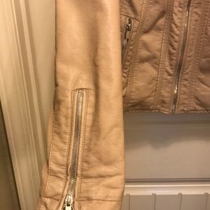 This jacket feels just like soft leather and has stretch for comfort! It pairs great with everything for a chic look. Heavy enough to keep you warm when it starts to get cool, but not hot!