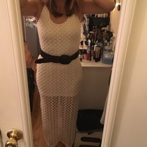 Cream knitted maxi jumpsuit it comes with a brown waist belt