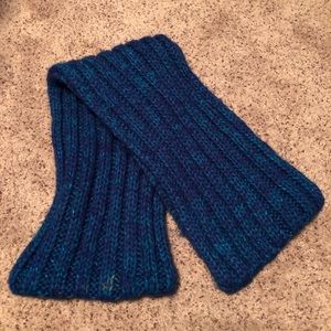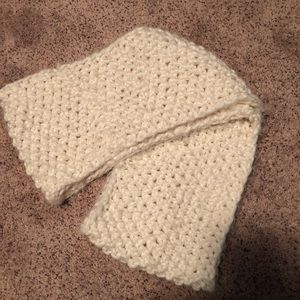 Cream knitted scarf and beanie, blue knitted scarf