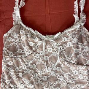 Cream lace tank top with ruffles and bows #coquette #fairy