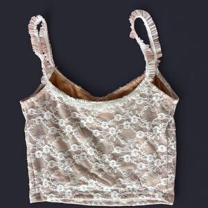 Cream lace tank top with ruffles and bows