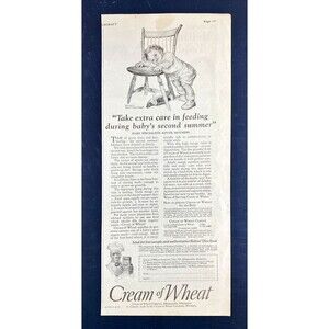 Cream of Wheat "Take extra care in feeding during Baby's 2nd Summer" Minneapolis, Minnesota. Vintage Print Ad 1925 Needlecraft Magazine June 1925 About 13 x 5.5 Inches. Carefully shipped.