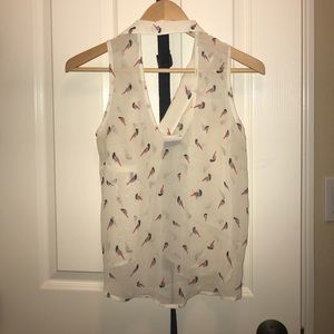 Cream printed sleeveless blouse