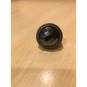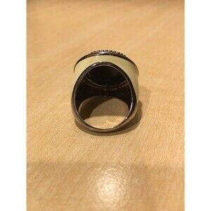 Cream ring with black and marcasite stones, size 10