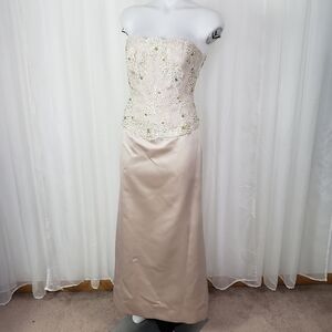 Cream strapless gown lace and beaddd bodice with matching lace shrug