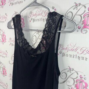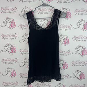 Cream tank top Lacie classic comfy stretchy Black Lace Trim Chemise