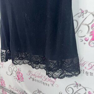 This chic black chemise with lace trim adds elegance to your collection. M.