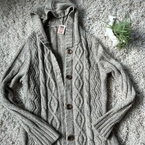 Cream vintage Faded Glory knitted thick lightweight warm cozy sweater weather button down jacket. Size S