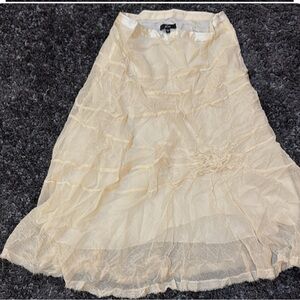 Cream vintage Maxi A-Line Skirt with Ruffled Tiers