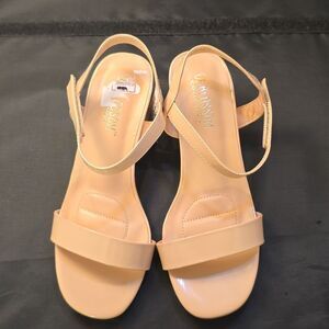 These cream heels feature a minimalist design with a low block heel and an adjustable ankle strap for a secure fit. The smooth material and clean lines make them a versatile choice for both casual and semi-formal occasions.