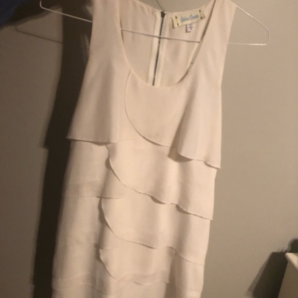 Cream-Colored Ruffled Shift Dress for special occasions or casual parties. Looser fit and mid-thigh length, and very flattering. Worn once or twice.